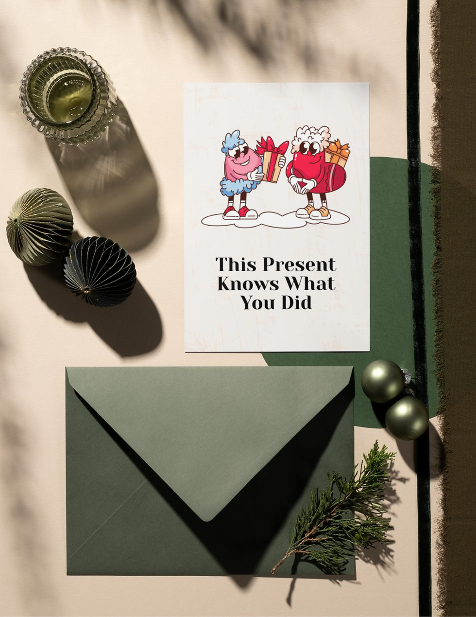 Just when you thought it was over, the miserable duck is back; this time stuck on a chimney like a very unwilling Santa. Perfect for anyone who knows the holidays are messy, loud, and unhinged, and comes with a fair warning: family chaos and profanity-laden nonsense are included.